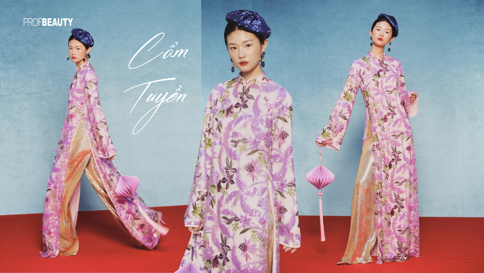 Những gam xanh, vàng, tím và các tông màu tươi sáng được sắp đặt có chủ ý, gợi nhắc không khí lễ hội rộn ràng nhưng vẫn giữ được sự hài hòa thị giác. Họa tiết hoa xuất hiện như một lời chào mùa mới rực rỡ, tươi vui nhưng không quá dày đặc để từng tà áo vẫn có không gian thở tôn lên dáng vẻ người mặc.