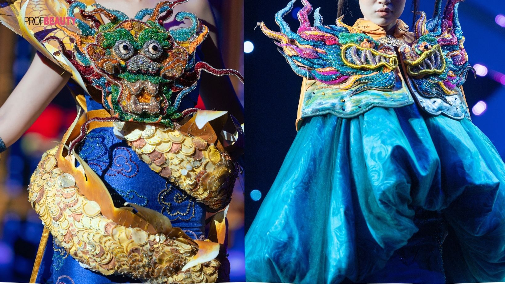 Chia sẻ với ProfBeauty, NTK Kiên Vũ nhấn mạnh: “Lần này, tôi mang đến thiết kế đơn giản, dân dã, lấy cảm xúc thiết kế như trở về xứ Huế. Hình ảnh tứ linh là hình ảnh uy quyền của dân tộc Việt Nam. Tôi mong muốn đưa những giá trị văn hóa truyền thống trở nên gần gũi hơn với thế hệ trẻ, đồng thời khẳng định rằng truyền thống và hiện đại có thể hòa quyện một cách hoàn hảo."