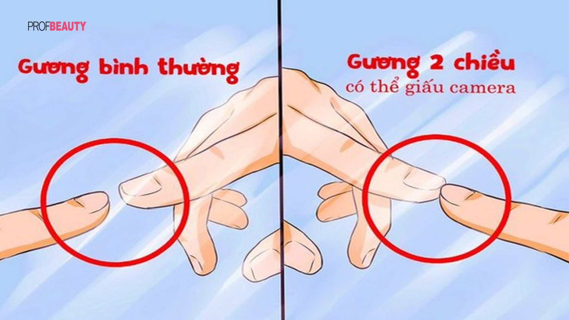 Để kiểm tra một chiếc gương có phải là gương hai chiều hay không, bạn hãy chĩa một ngón tay về phía mặt gương. Nếu như có một khoảng cách nhỏ giữa ngón tay và hình ảnh được phản chiếu trong gương thì đây là gương thật, nếu không thì đây là gương hai chiều.