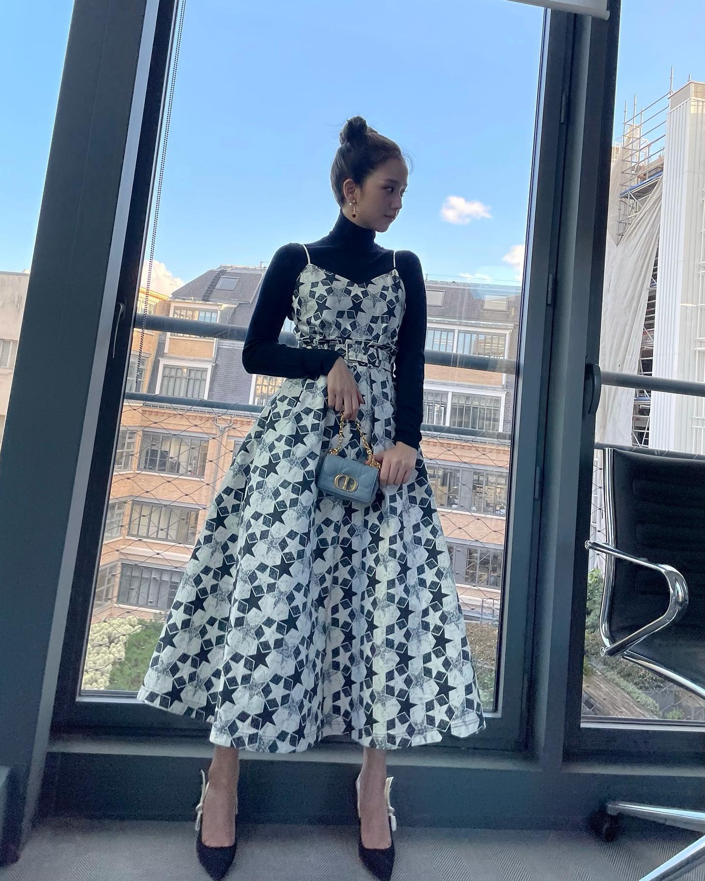 Đại sứ của Dior thường xuyên lăng xê gu thời trang nhẹ nhàng và nữ tính. Chính vì vậy, một chiếc áo len cổ lọ kết hợp với chân váy thường được Jisoo lựa chọn trong nhiều dịp xuất hiện. Cô thường ứng dụng váy hai dây với những chiếc áo mỏng nhẹ, ôm sát cơ thể. Đối với những chiếc sweater len dày, Jisoo gợi ý phái đẹp mix với chân váy mini xếp ly tạo nên một phong cách năng động hơn. Chị cả của BLACKPINK cũng khuyên sử dụng phụ kiện như hạt nhựa hoặc búi tóc mickey để làm điểm nhấn cho trang phục