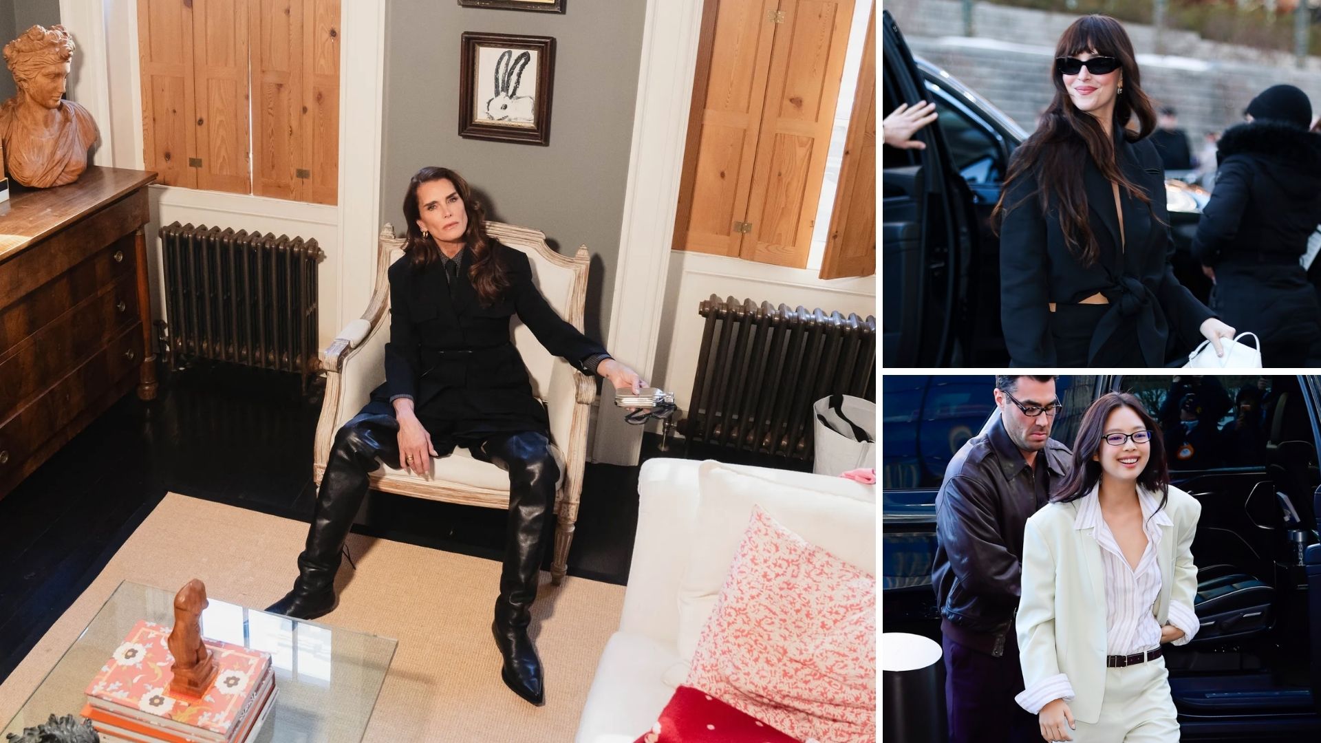 Điểm nhấn làm lay động lòng người chính là sự hồi sinh của mẫu quần bò kinh điển từ năm 1976, đây là thiết kế bằng vải thô đầu tiên từng xuất hiện trên sàn diễn của nhà mốt. Veronica đã khéo léo phục dựng lại biểu tượng này kết hợp cùng những dòng chữ ký tay thêu tỉ mỉ trên áo khoác phi công. Khoảnh khắc ấy càng trở nên vô giá khi Brooke Shields - nàng thơ huyền thoại gắn liền với ký ức về chiếc quần năm nào - cùng hội ngộ tại hàng ghế đầu với những gương mặt đình đám như Dakota Johnson và Jennie (BLACKPINK).