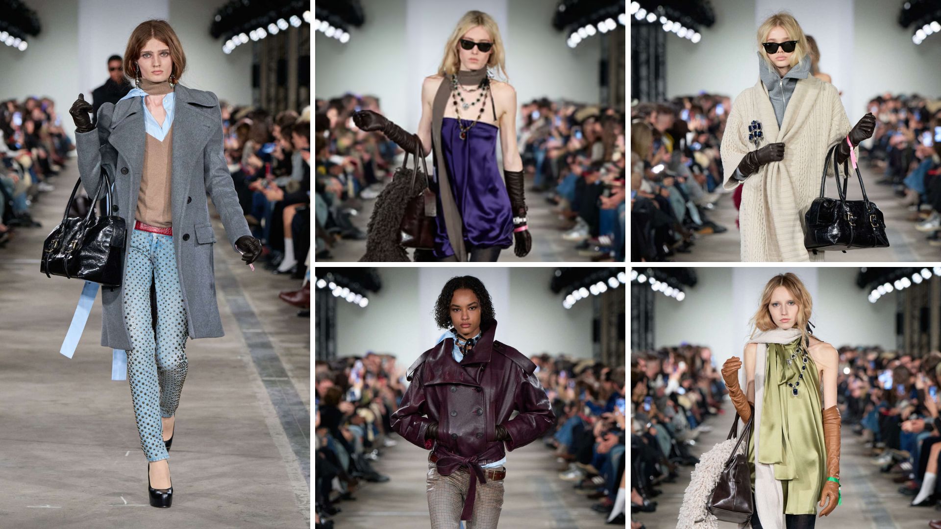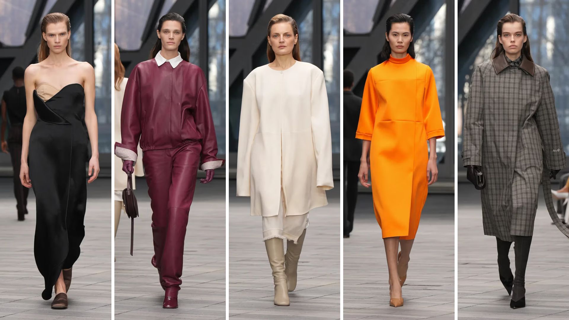 Xuyên suốt bộ sưu tập, những gam màu trầm mặc như xám đá và đen vốn là đặc sản của sự tối giản, nay được sưởi ấm bởi sắc cam quýt rạng rỡ và đỏ rượu vang nồng nàn trên chất liệu da mỏng nhẹ như sương. Sự tương phản đầy thú vị giữa những chiếc áo khoác khổ lớn có phần cổ rộng bằng len xù hay lông cừu ấm áp, đặt cạnh những tà váy lụa ánh kim bay bổng ở cuối chương trình đã tạo nên một bản giao hưởng tuyệt mỹ về chất liệu. Qua bàn tay tài hoa của Leoni, những giá trị xưa cũ không còn ngủ yên trong quá khứ mà đã hồi sinh trở thành biểu tượng của vẻ đẹp tự chủ.