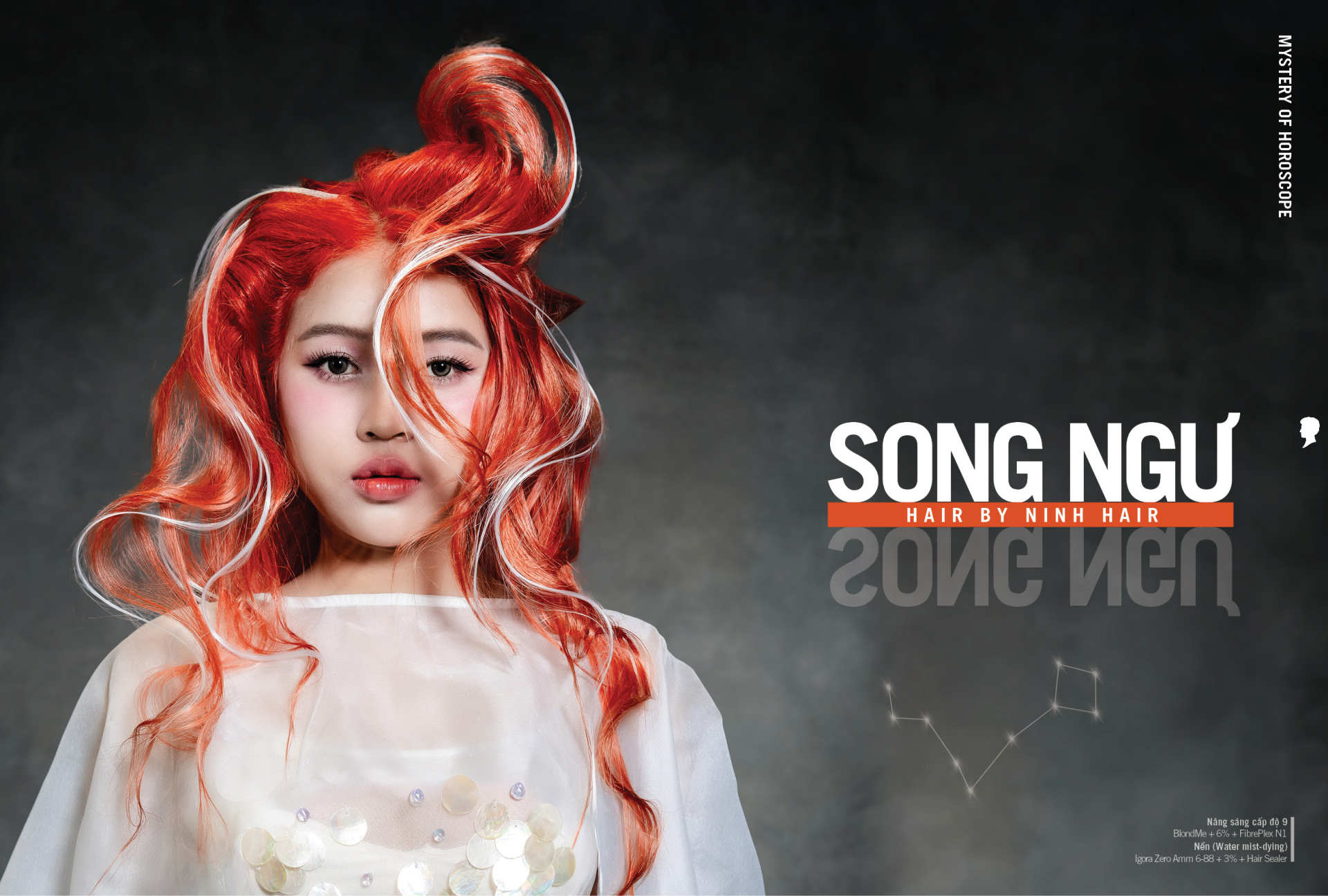 Tại Mystery of Horoscope Hairshow, chuyên gia Ninh Hair đảm nhận thực hiện mẫu tóc đại diện cho ba cung hoàng đạo: Bọ Cạp, Cự Giải và Song Ngư thể hiện trực giác, cảm xúc và chiều sâu nội tâm, tinh thần xuyên suốt trong phong cách sáng tạo.