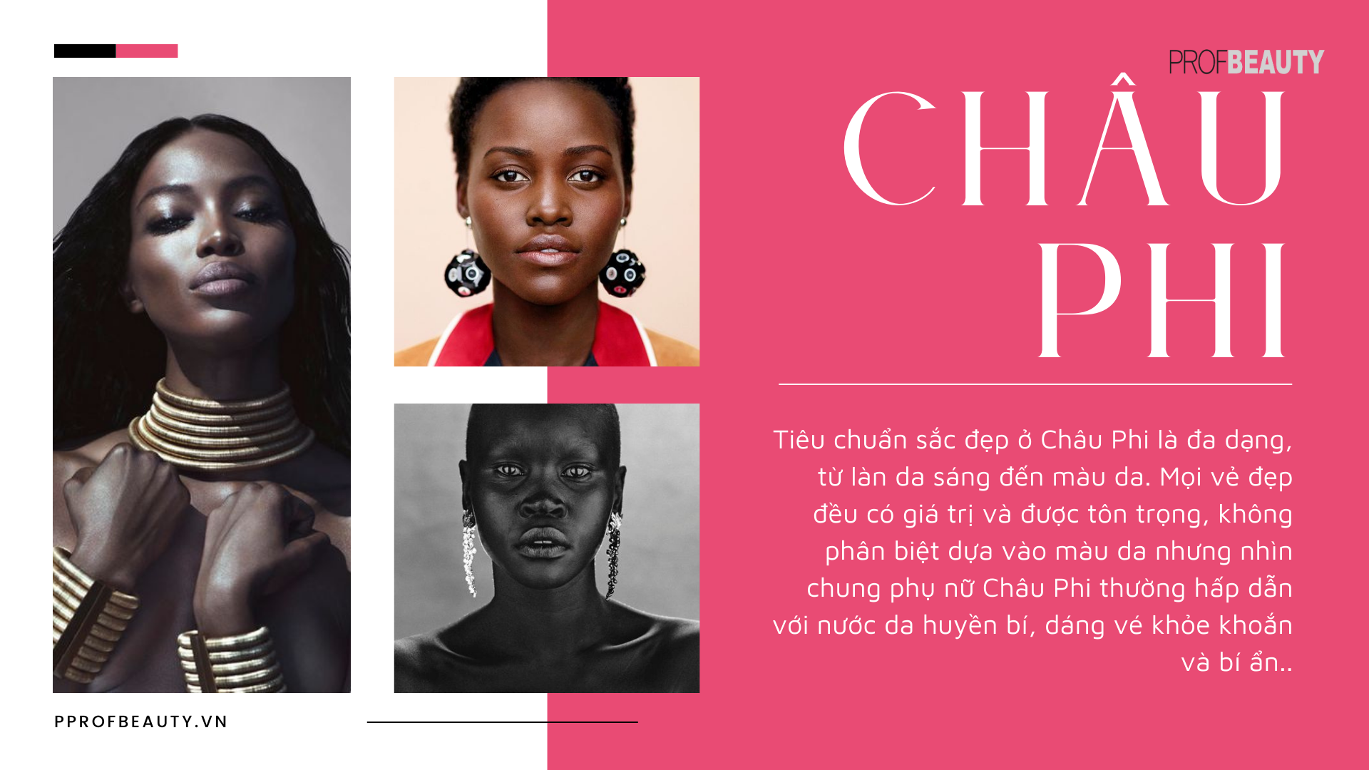 Tiêu chuẩn sắc đẹp ở Châu Phi là đa dạng, từ làn da sáng đến màu. Mọi vẻ đẹp đều có giá trị và được tôn trọng, không phân biệt dựa vào màu da. Nhưng nhìn chung, vẻ đẹp của phụ nữ Châu Phi có phần huyền bí, quyến rũ nhờ vào nước da sẫm màu.