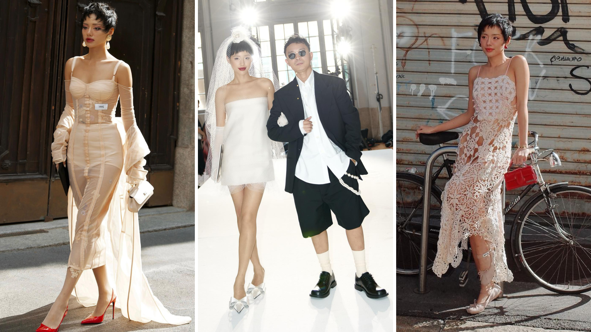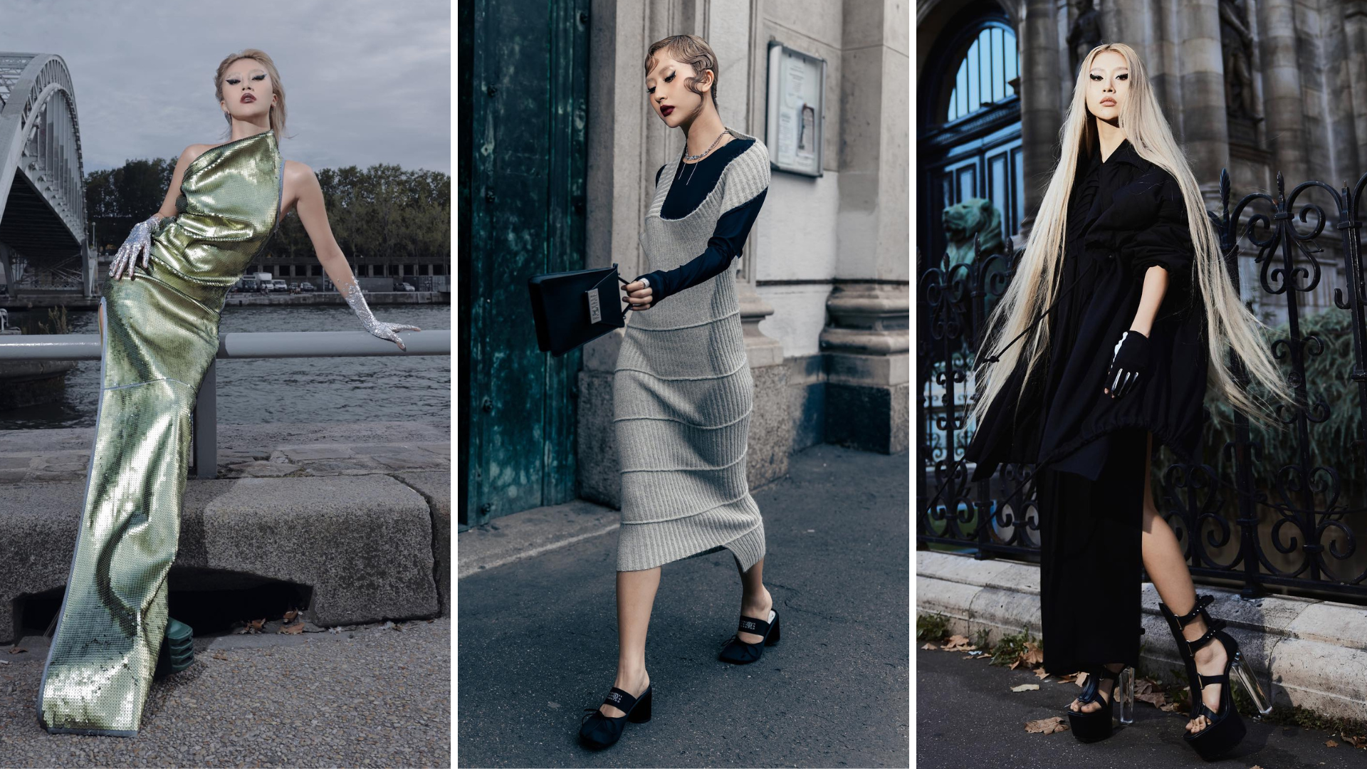 Vì thời gian khá gấp rút nên ekip của Khánh Linh chỉ có chồng sắp cưới đồng hành, nhưng bạn trai bị thương nên cô đành tự mình chuẩn bị hết tất cả. Năng lực của nàng fashionista Việt một lần nữa lại khiến mọi người bất ngờ khi cô diện bộ trang phục đậm chất “futuristic” với chiếc khuyên tai của Hugo Kreit cùng chiếc đầm đen quyến rũ của hãng. Người đẹp tỏa sáng trên đường phố Milan và Paris Fashion Week với mái tóc pixie táo bạo, đen tuyền đặc trưng của châu Á.