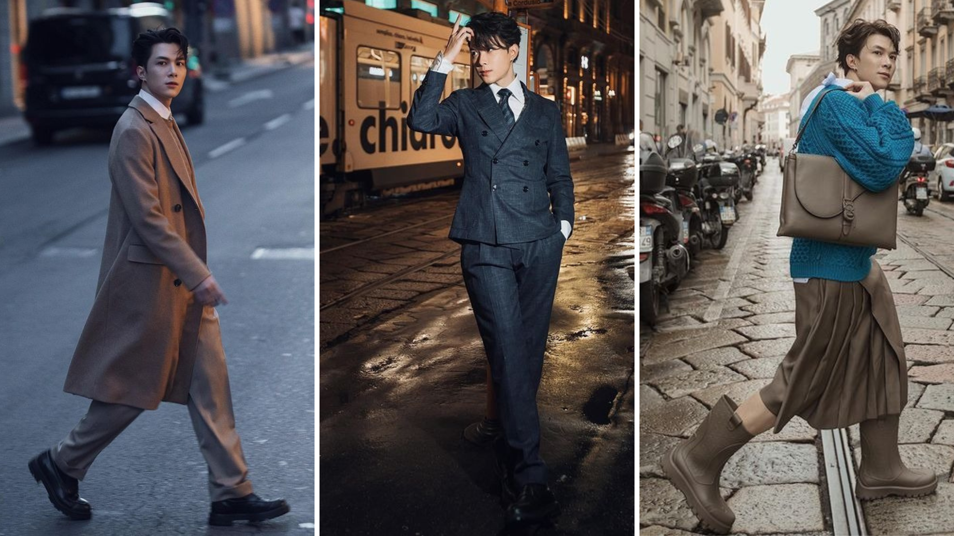 Thoát khỏi hình ảnh bụi bặm, đậm chất đường phố hằng ngày như áo thun phối với quần jeans rộng thùng thình, nam ca sĩ điển trai với những bản phối layering có màu trung tính cùng áo sơ mi, gile giữ ấm, trench coat dài hay một bộ suit lịch lãm. Với “phát súng’ đầu tiên tại Milan Fashion Week, Anh Tú đã nhận được nhiều lời khen có cánh từ khán giả ở quê nhà.