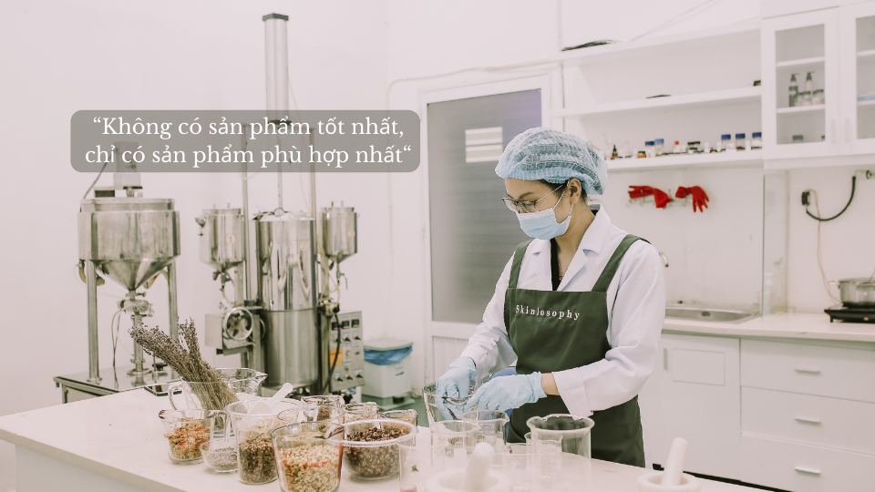 Để tối ưu hóa được tính năng của những dược liệu quý địa phương như Đông trùng hạ thảo, Sâm Ngọc Linh, Linh Chi, Thông Đỏ, Skinlosophy đã kết hợp những thành phần của ngành khoa học tiên tiến như Nano Hyaluronic Acid hay dầu Argan được nghiên cứu và xử lý kỹ lưỡng để có kết cấu tương tự cho làn da của người Việt Nam. Đối với Skinlosophy, việc sử dụng đúng cách nguồn nguyên liệu thô sơ là vô cùng quan trọng để có thể mang đến một sản phẩm hiệu quả cho làn da của người dân ở đất nước có khí hậu nhiệt đời khắc nghiệt. Nếu những thành phần thô sơ không được xử lý kỹ lưỡng theo nghiên cứu và tiêu chuẩn, thì có thể dẫn đến sản phẩm không tinh khiết, gây bít tắc da và lãng phí nguồn tài nguyên thiên nhiên đáng quý. Skinlosophy được sáng lập bởi chuyên viên trị liệu da liễu chuyên nghiệp và dược sĩ vào cuối năm 2013, cho đến năm 2021, đã trở thành thương hiệu waterless đầu tiên tại Việt Nam.
