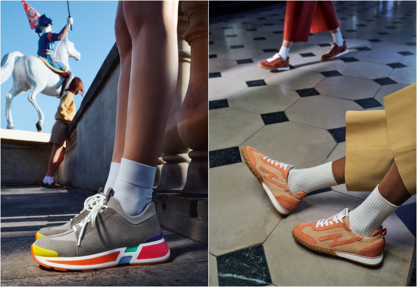 Trong khi thiết kế giày thể thao từ nhung da bê cao cấp thu hút bởi chữ cái biểu tượng vắt chéo trên thân. Di sản và danh xưng Hermès thấm đẫm trong từng tiểu tiết, biến những đôi giày thành các tác phẩm nghệ thuật, đồng hành cùng các quý cô trong từng khoảnh khắc thường nhật.