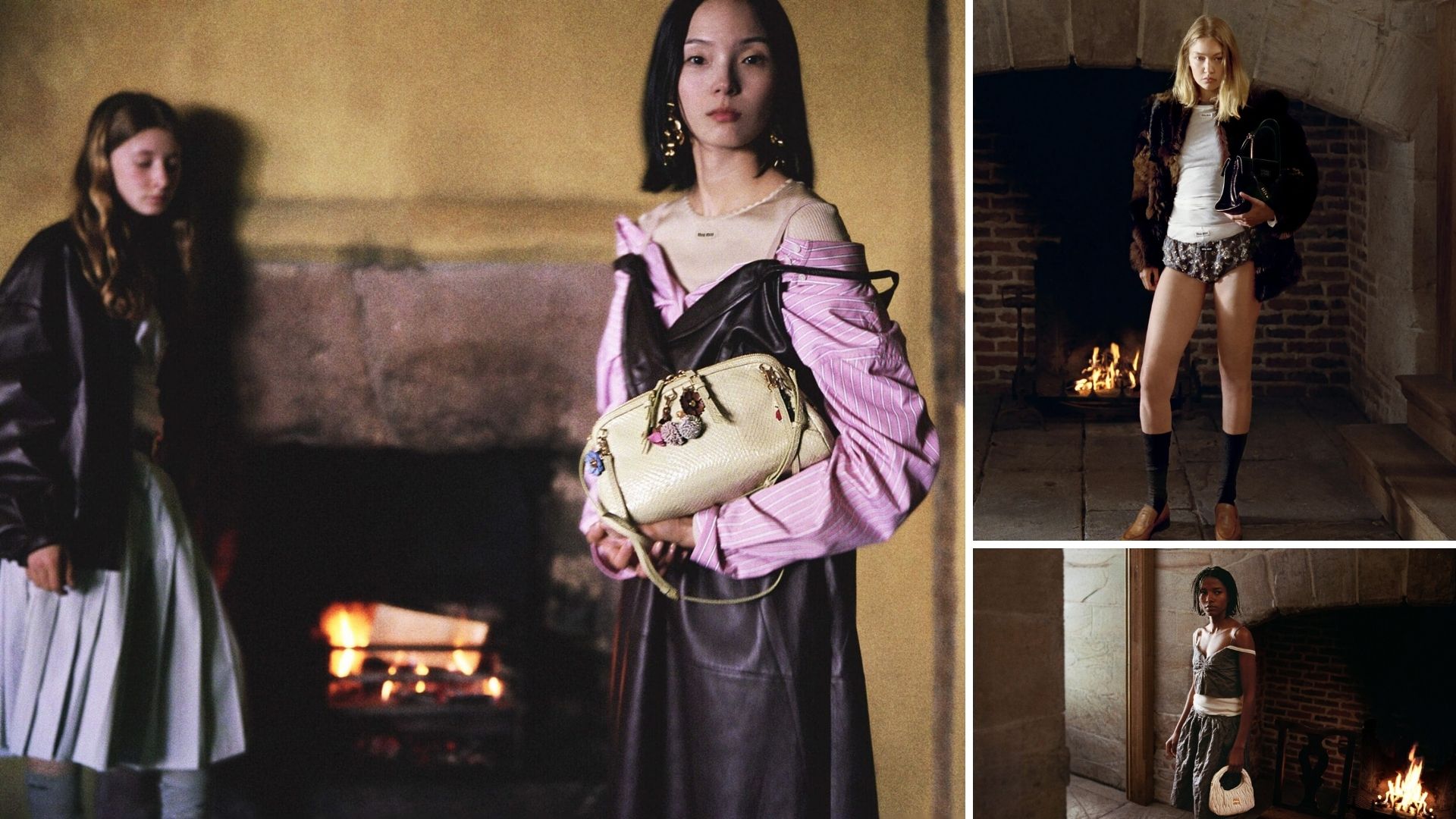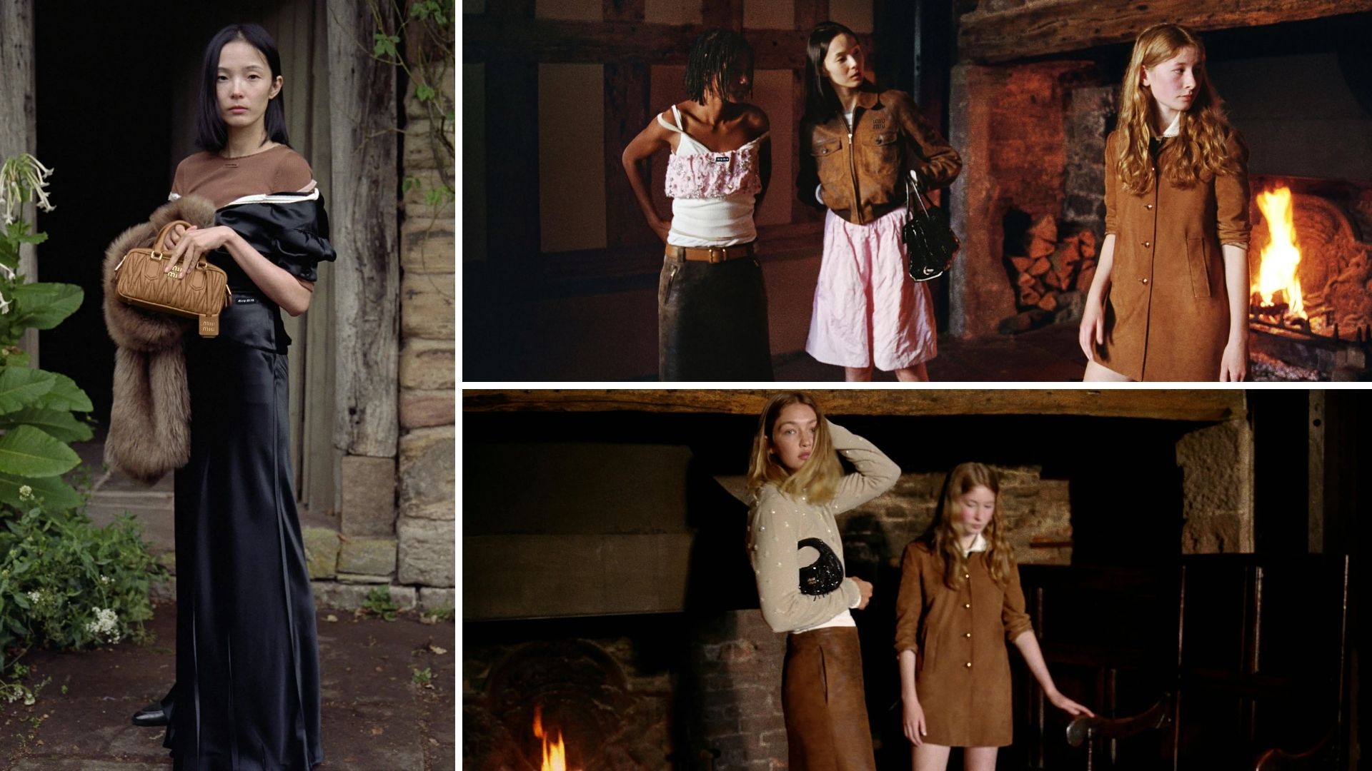 Chiến dịch Holiday 2025 của Miu Miu, với sự góp mặt của Gigi Hadid, Dede Mansro, Viola và Ju Xiaowen là một cuộc đối thoại đầy xúc cảm giữa phẩm chất thanh xuân và sự vĩ đại của lịch sử. Bối cảnh diễn ra tại một dinh thự cổ kính ở vùng nông thôn Anh, nơi vẻ tinh khôi, tươi trẻ của dàn nàng thơ đối lập mạnh mẽ với sự uy nghi tĩnh lặng của kiến trúc Elizabethan hằn dấu thời gian. BST không chỉ dừng lại ở ánh lấp lánh mà còn thể hiện sự tinh tế qua chất liệu: satin duchesse thêu đính, shearling chắp vá và dệt kim đính sequin. Tất cả tạo nên sự sang trọng không gắng gượng, vẻ đẹp tự nhiên ngẫu hứng đối đầu với sự trang nghiêm của truyền thống.
