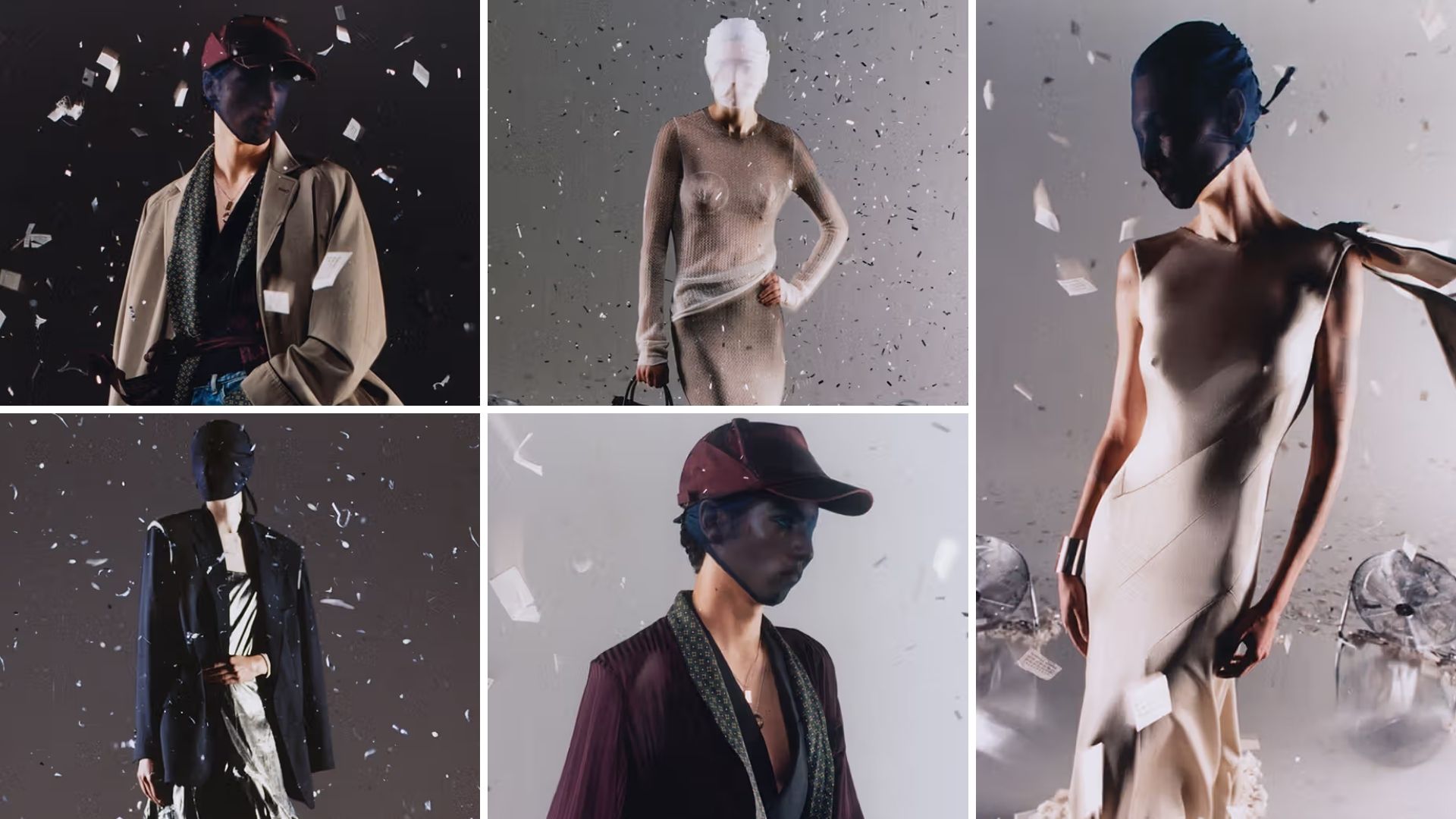 Maison Margiela tiếp tục theo đuổi tinh thần và vẻ đẹp phá cách đặc trưng trong chiến dịch Snowstorm (Bão Tuyết). Được chụp và đạo diễn bởi Frank Lebon, hình ảnh người mẫu ẩn sau lớp mặt nạ lụa giữa cơn bão kim tuyến tạo nên khung cảnh siêu thực. Bộ sưu tập xoay quanh những đường cắt chuẩn xác và chất liệu được xử lý công phu, bao gồm đầm cắt xéo, áo măng tô và đồ dệt kim loang màu ombre. Điểm nhấn không thể bỏ qua là các mẫu bốt Tabi metallic và túi xách 5AC Soft XL, giữ vững tinh thần độc đáo, khác biệt của thương hiệu trong mọi bối cảnh lễ hội.