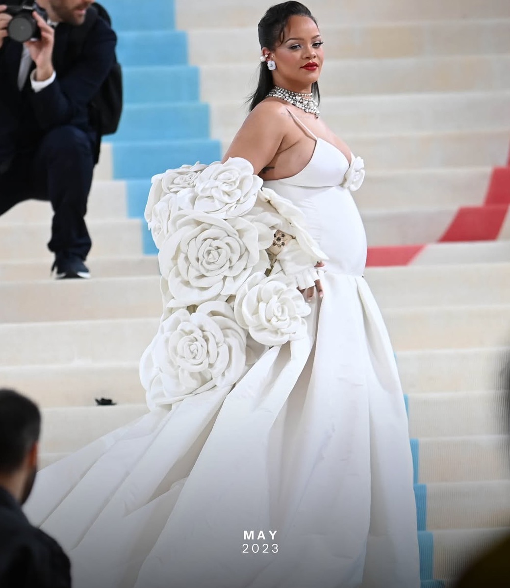 Rihanna được biết đến là một biểu tượng âm nhạc và doanh nhân thành đạt, nhưng vai trò khiến cô tự hào nhất lại là “người mẹ”. Ngay từ khoảnh khắc đầu tiên công khai mang thai với chiếc áo khoác Chanel hồng để lộ vòng hai đeo đầy dây chuyền kim cương Rihanna đã viết lại quy tắc ăn mặc cho phụ nữ mang thai. Cô không che giấu cơ thể mình, cô tôn vinh nó. Và trong suốt thai kỳ, mỗi lần xuất hiện của Rihanna là một tuyên ngôn thời trang mạnh mẽ, nơi bụng bầu không bị giấu kín mà trở thành món trang sức cao cấp, xứng đáng được thế giới chiêm ngưỡng.