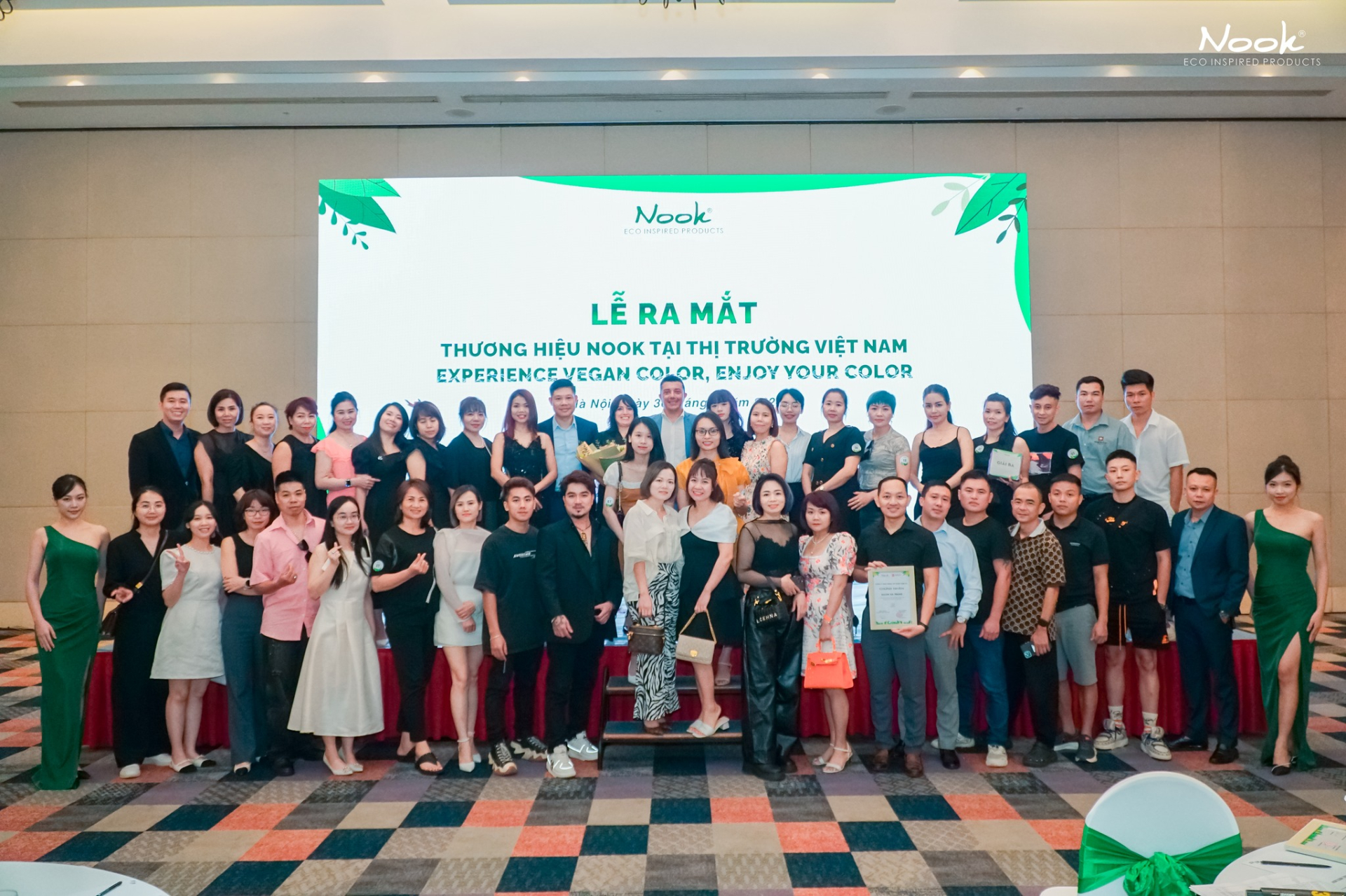 Vào tháng 7/2024, Nook đã tổ chức chuỗi sự kiện ra mắt tại Hà Nội và TP.HCM, quy tụ hơn 200 salon tóc hàng đầu. Sự kiện không chỉ là cột mốc đánh dấu bước ngoặt của mỹ phẩm thuần chay tại Việt Nam mà còn gửi đi thông điệp mạnh mẽ: "Xanh không chỉ là một màu sắc, mà còn là một phong cách sống." Với sứ mệnh cao cả, Nook nhanh chóng trở thành lựa chọn hàng đầu và là người bạn đồng hành của các salon tóc và người tiêu dùng yêu thích lối sống bền vững.