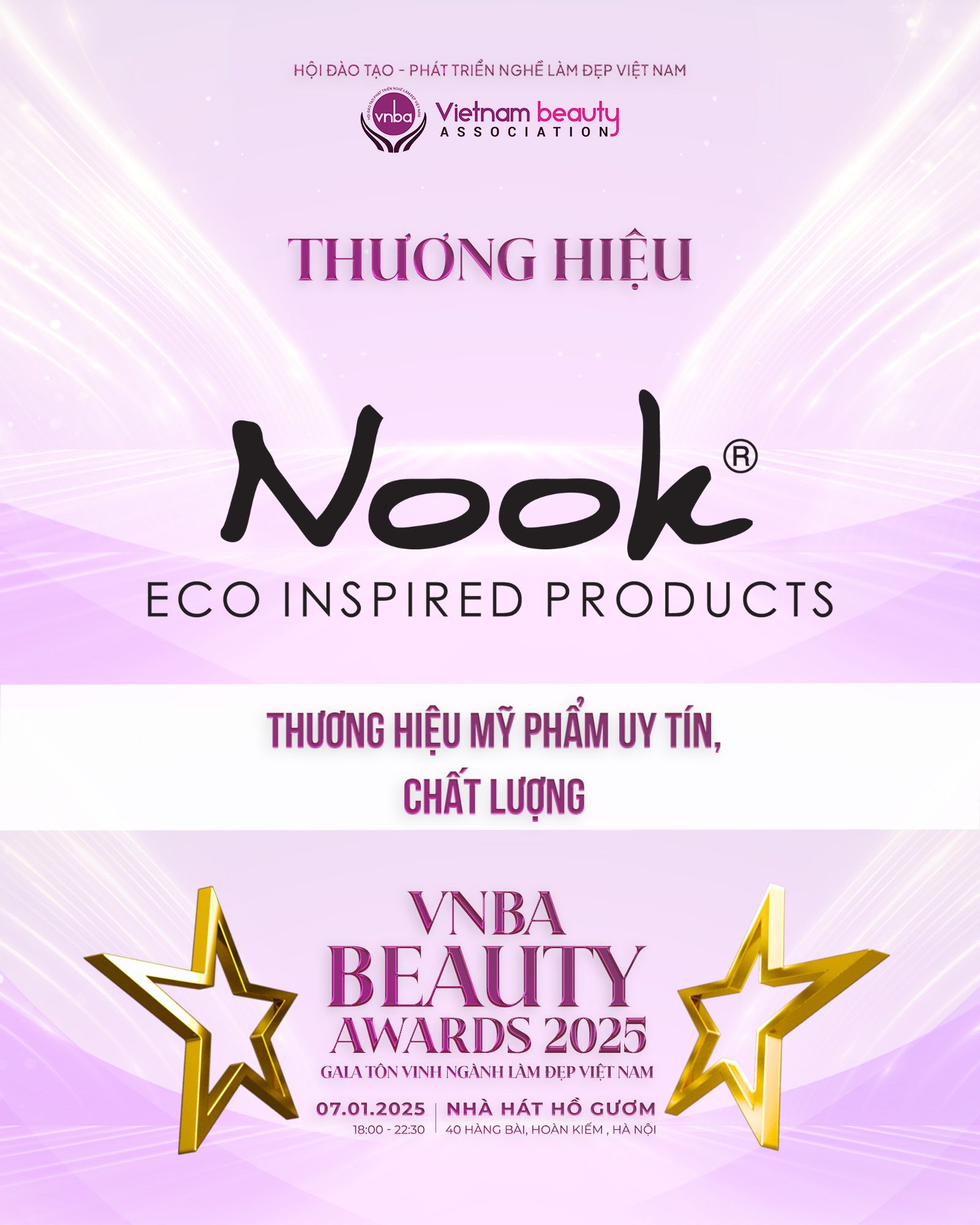 Chính nhờ lẽ đó, Nook đã xây dựng được một cộng đồng người tiêu dùng trung thành nhờ sự cam kết về chất lượng, đổi mới không ngừng và giá trị xanh. Trong bối cảnh mỹ phẩm thuần chay ngày càng phổ biến, Nook tự hào là người tiên phong dẫn dắt xu hướng, đưa vẻ đẹp Việt Nam sánh ngang tầm quốc tế. Đây chính là lý do thương hiệu được vinh danh trong đề cử "Thương hiệu mỹ phẩm uy tín, chất lượng" tại Gala VNBA Beauty Awards 2025. Đây không chỉ là sự công nhận cho chất lượng sản phẩm mà còn là minh chứng cho giá trị bền vững mà thương hiệu mang lại.