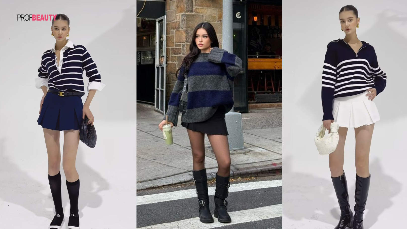 Một cách phối kinh điển cho mùa thu là mặc áo len mỏng bên ngoài áo sơ mi cổ bẻ, để lộ phần cổ và tà áo dưới. Cách layer này mang lại cảm giác chỉn chu, thanh lịch mà vẫn trẻ trung rất hợp cho đi học, đi làm hay dạo phố. Chi tiết kẻ sọc đang là mốt năm nay, chiếc áo len kẻ sọc cùng một chiếc quần đùi ngắn là đủ outffit dạo phố sành điệu. Với những ngày thu nắng nhẹ, hãy thử áo len mỏng cùng chân váy chữ A hoặc quần short jean, thêm một đôi boots cổ ngắn hay giày thể thao trắng. Set đồ này vừa năng động, vừa giữ được nét nữ tính tinh nghịch. Khi bạn không muốn cầu kỳ, chỉ cần mix áo len mỏng cùng quần jean ống suông hoặc quần vải dáng rộng, nhấn nhá bằng thắt lưng và túi xách nhỏ là đã đủ tạo nên outfit tối giản mà vẫn bắt trend.