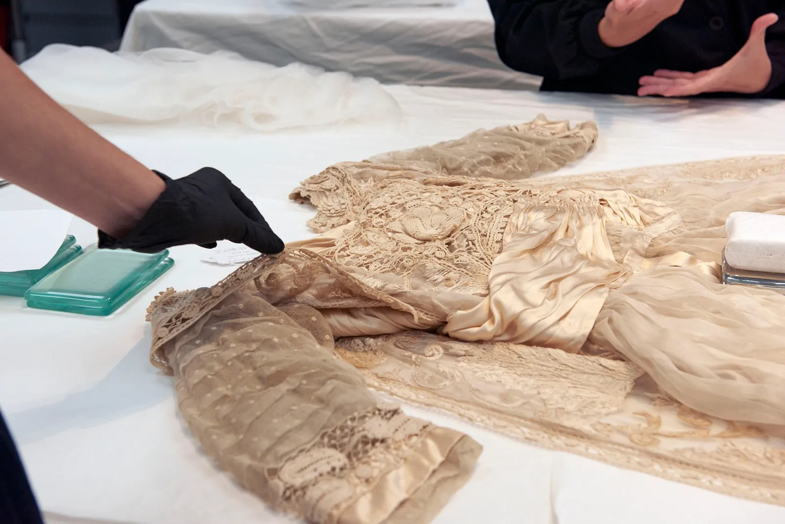 Một số trang phục quá mỏng manh để treo trên ma-nơ-canh sẽ được trưng bày trong hộp thủy tinh như những “người đẹp đang ngủ” và khách mời có thể phân tích kỹ thuật thủ công chi tiết cũng như sự xuống cấp của chúng khi ở gần. Trong những trường hợp này, một kỹ thuật ảo ảnh được gọi là “Pepper Ghost” sẽ cho thấy những thiết kế này trông như thế nào vào thời đại nguyên thủy khi chúng vừa được sản xuất và còn sử dụng được.