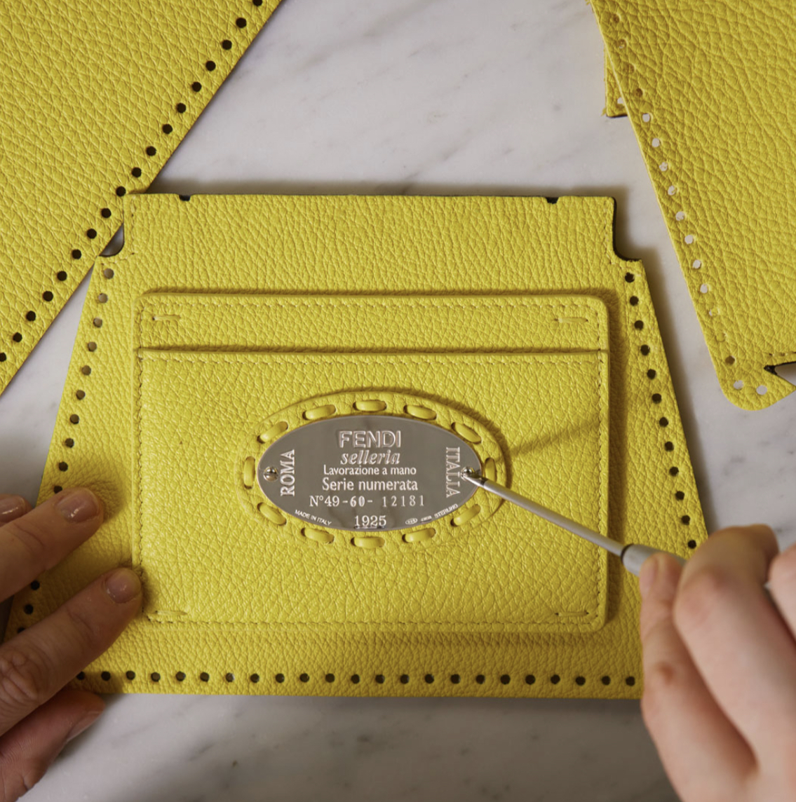 Mỗi biểu tượng Fendi ở Selleria được hoàn thành bởi một thẻ sterling khắc số sê-ri duy nhất và năm 1925, một minh chứng cho truyền thống làm thủ công độc đáo.