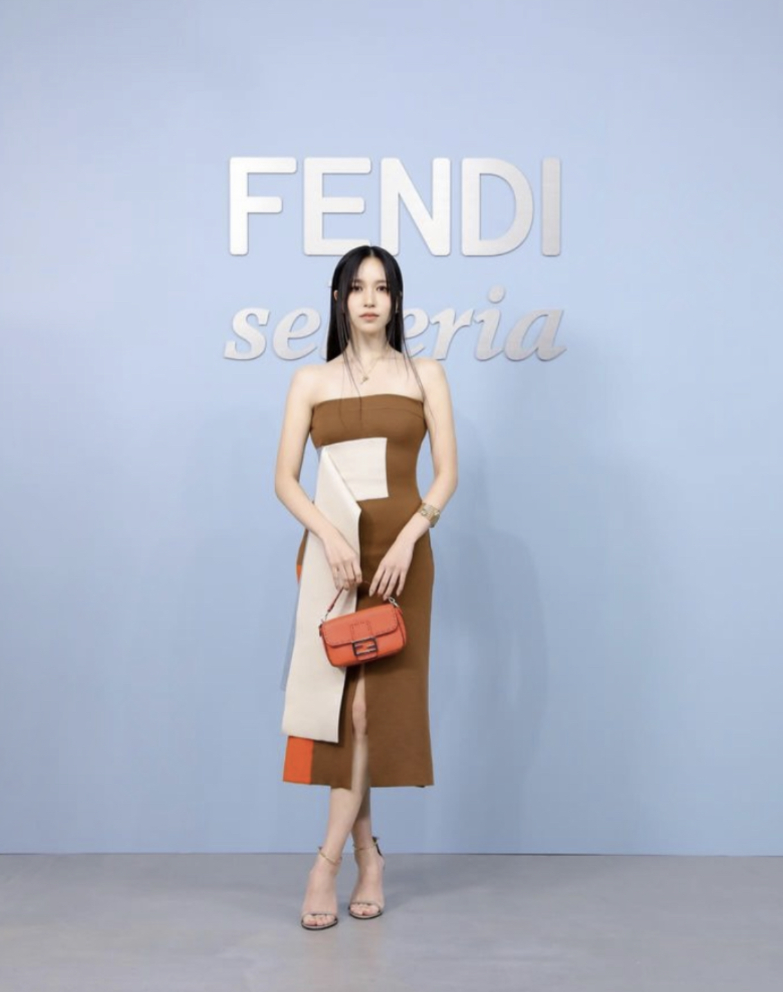 Trước giờ tham gia sự kiện của Fendi, Mina đã đăng tải loạt ảnh với ngoại hình xinh đẹp, sang trọng khi chọn kết hợp với nhiều phụ kiện của nhà mốt đình đám, đặc biệt là túi xách. Những bức ảnh cũng phần nào cho thấy sự yêu mến của nữ idol dành cho thương hiệu đến từ nước Ý này.