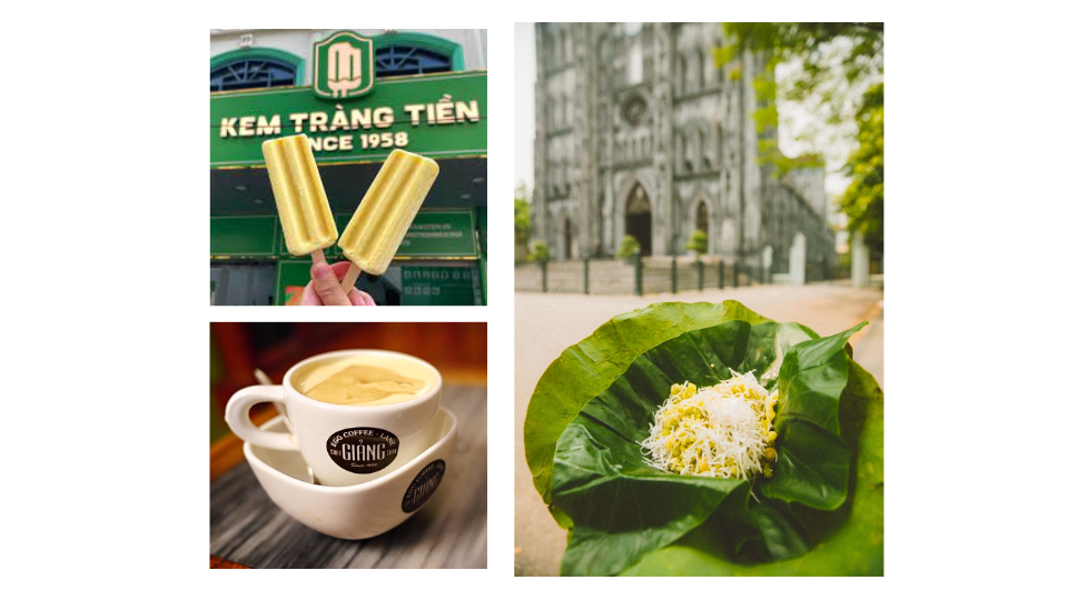 Từ mặt hồ Gươm, bạn có thể rẽ vào hàng Trống để có thể ghé thăm cả Nhà Thờ Lớn, nơi bạn có thể ngồi ngắm nhìn Nhà Thờ và nhâm nhi ly trà chanh với gói xôi cốm thơm phức được bán ở những gánh hàng đặc trưng của Hà Nội.