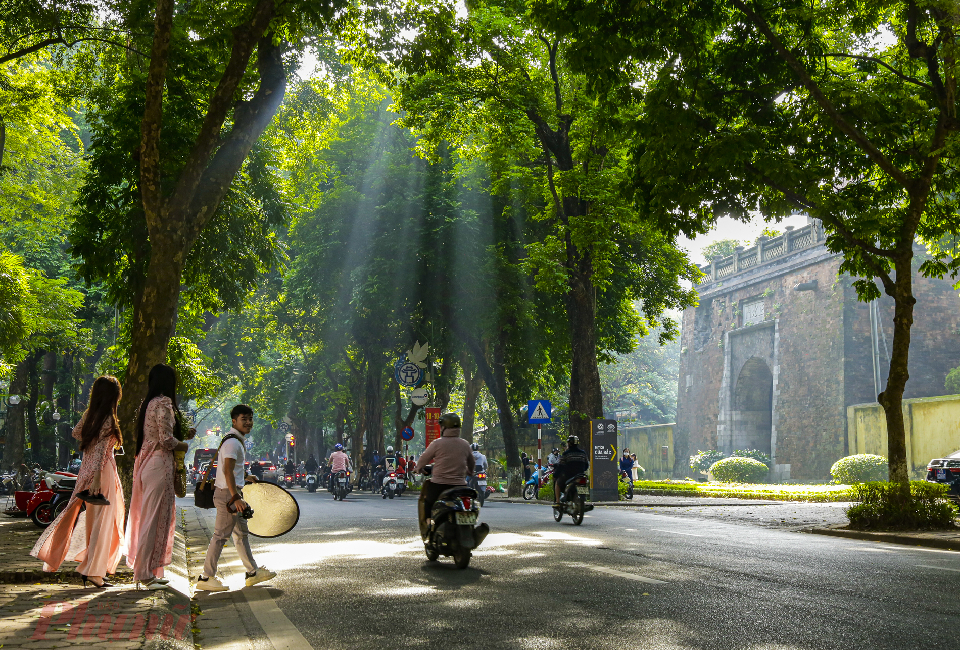 Nhưng để có thể ngắm nhìn được khung cảnh có đủ thiên nhiên, con người và không khí của thủ đô thì con đường Phan Đình Phùng (Ba Đình) trước giờ vẫn luôn nổi tiếng với các chị em phụ nữ, gia đình và cả các bạn trẻ để chọn lựa vi vu. Rất dễ để có thể bắt gặp các chị em mặc những trang phục đẹp như áo dài đang chụp ảnh ở hai bên vỉa hè.