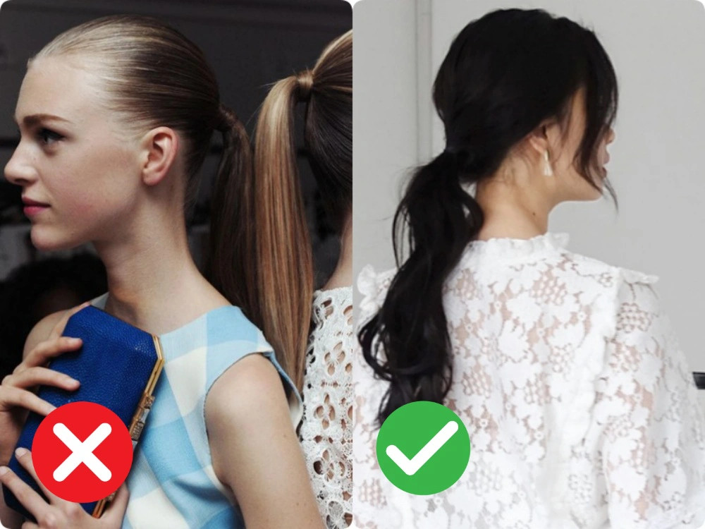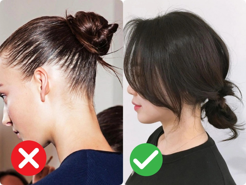 Việc buộc tóc chặt về phía sau thường xuyên sẽ gây áp lực không cần thiết lên chân tóc, gây hư tổn và gãy rụng.
