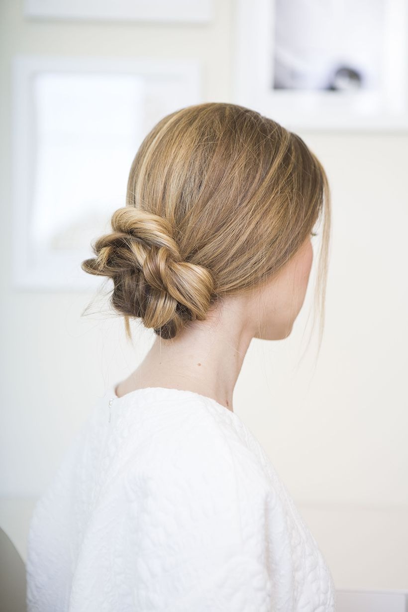 Để tạo thêm điểm nhấn sang trọng, bạn có thể tạo kiểu bằng cách rẽ ngôi giữa đỉnh đầu. Sau đó, xoắn tóc từ phía đỉnh đầu và cuộn lại để tạo thành một búi tóc. Một cách khác, bạn có thể làm cho kiểu búi tóc trở nên ấn tượng hơn bằng cách buộc đuôi ngựa ở phía thấp, sau đó gập tóc lại. Tách phần đuôi thừa làm đôi, sau đó cuộn quanh phần búi tóc và cố định bằng dây chun. Với 2 bước đơn giản như vậy, bạn sẽ có ngay kiểu tóc búi thấp vô cùng sang trọng. Nếu bạn làm việc trong môi trường công sở hoặc trong những dịp cần diện mạo gọn gàng, lịch sự, bạn có thể sử dụng keo xịt tóc nhẹ để giữ những sợi tóc nhỏ.