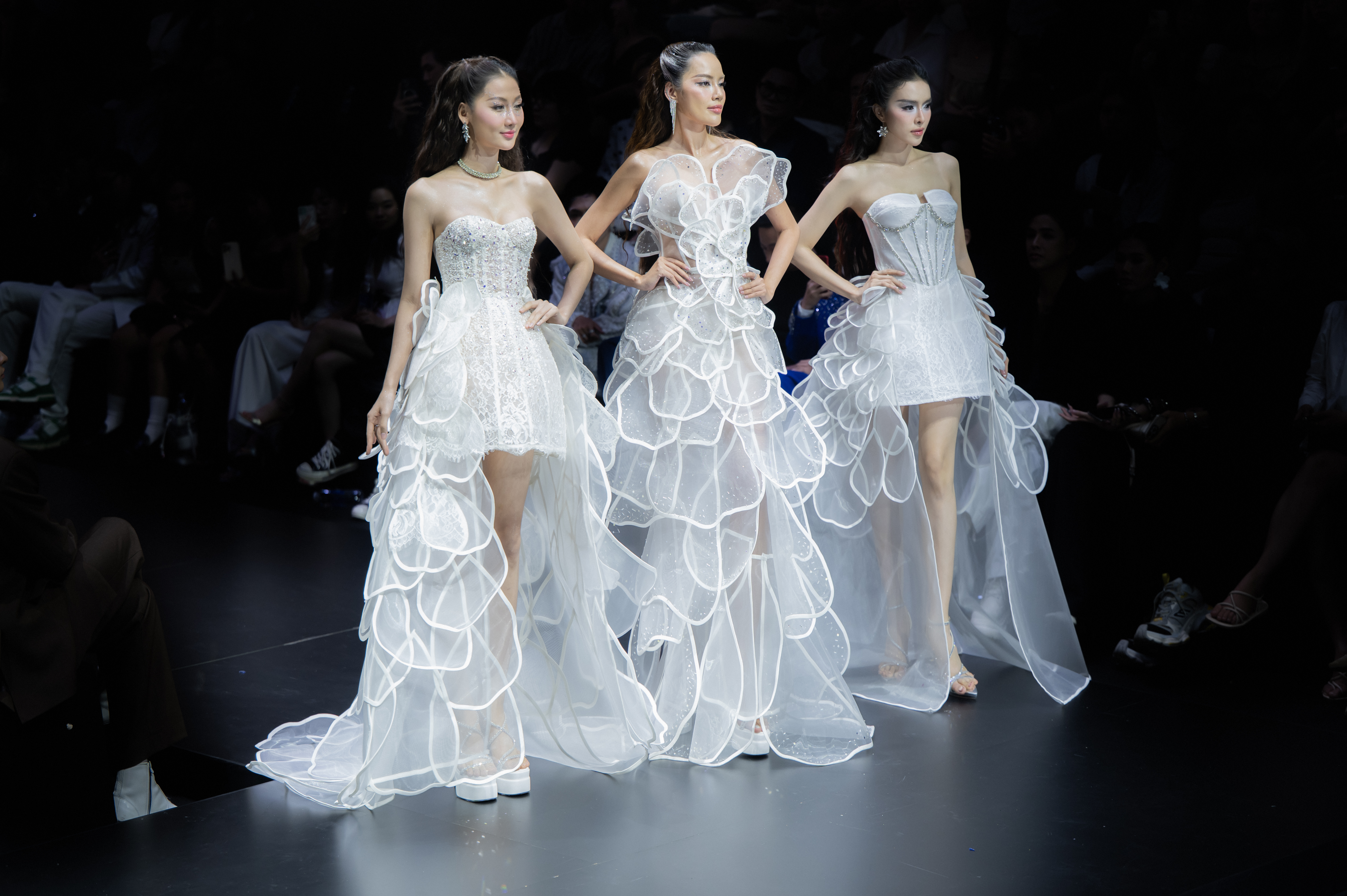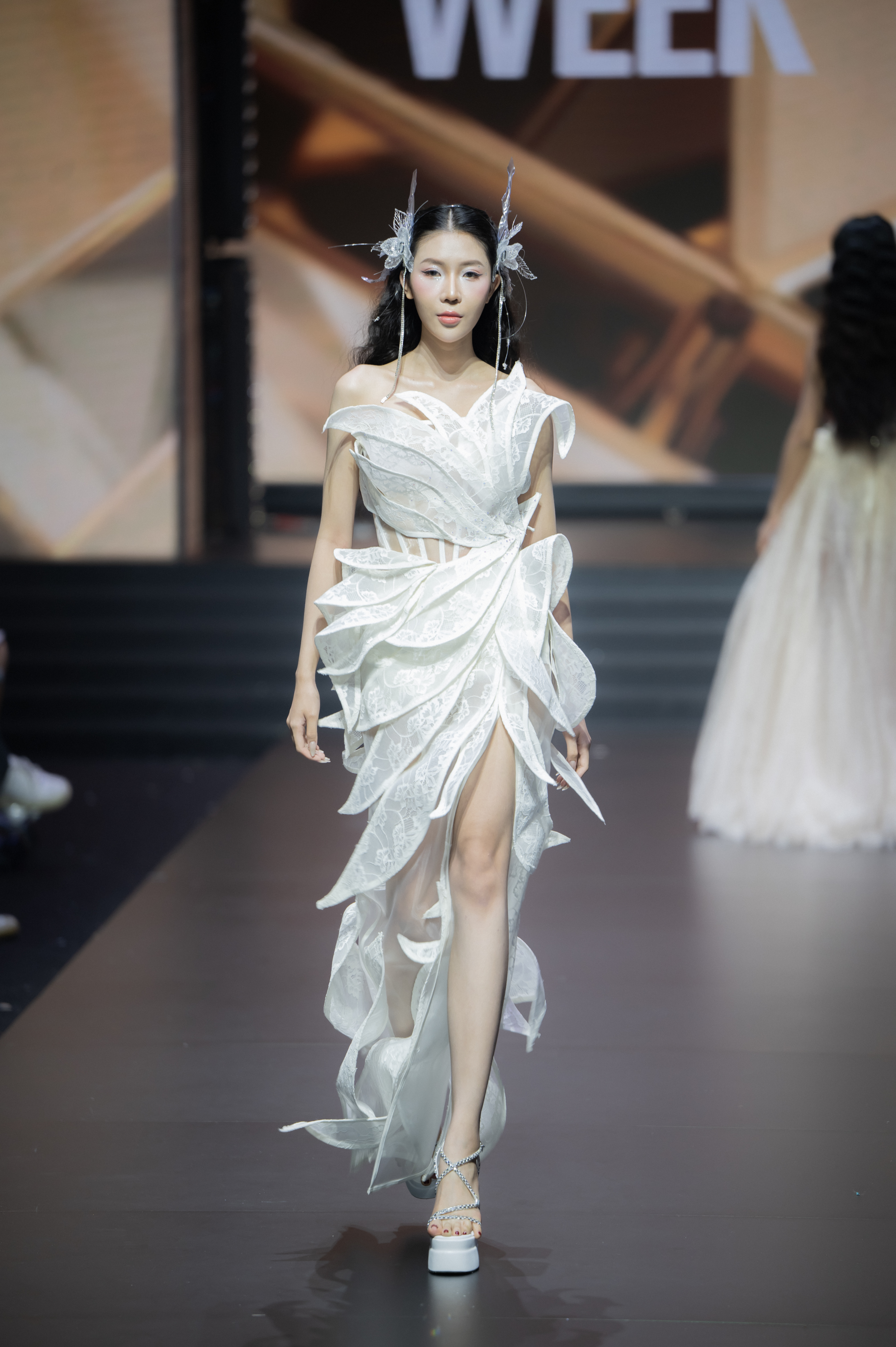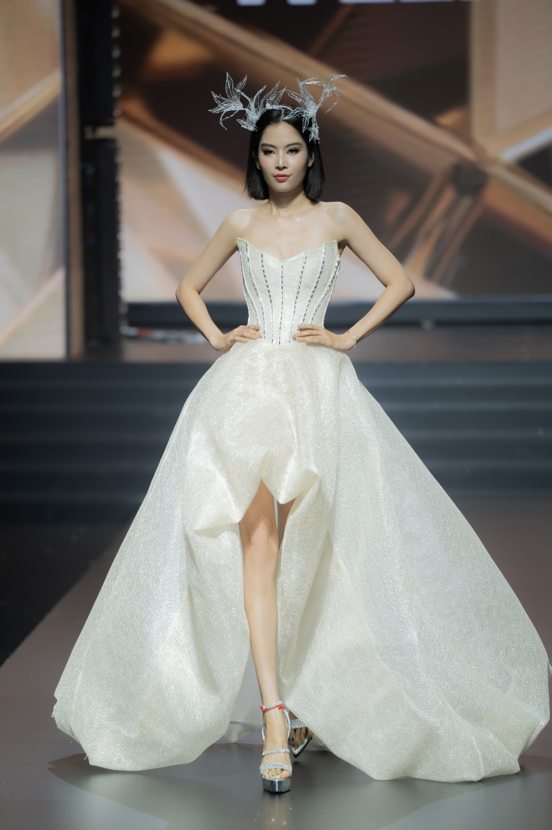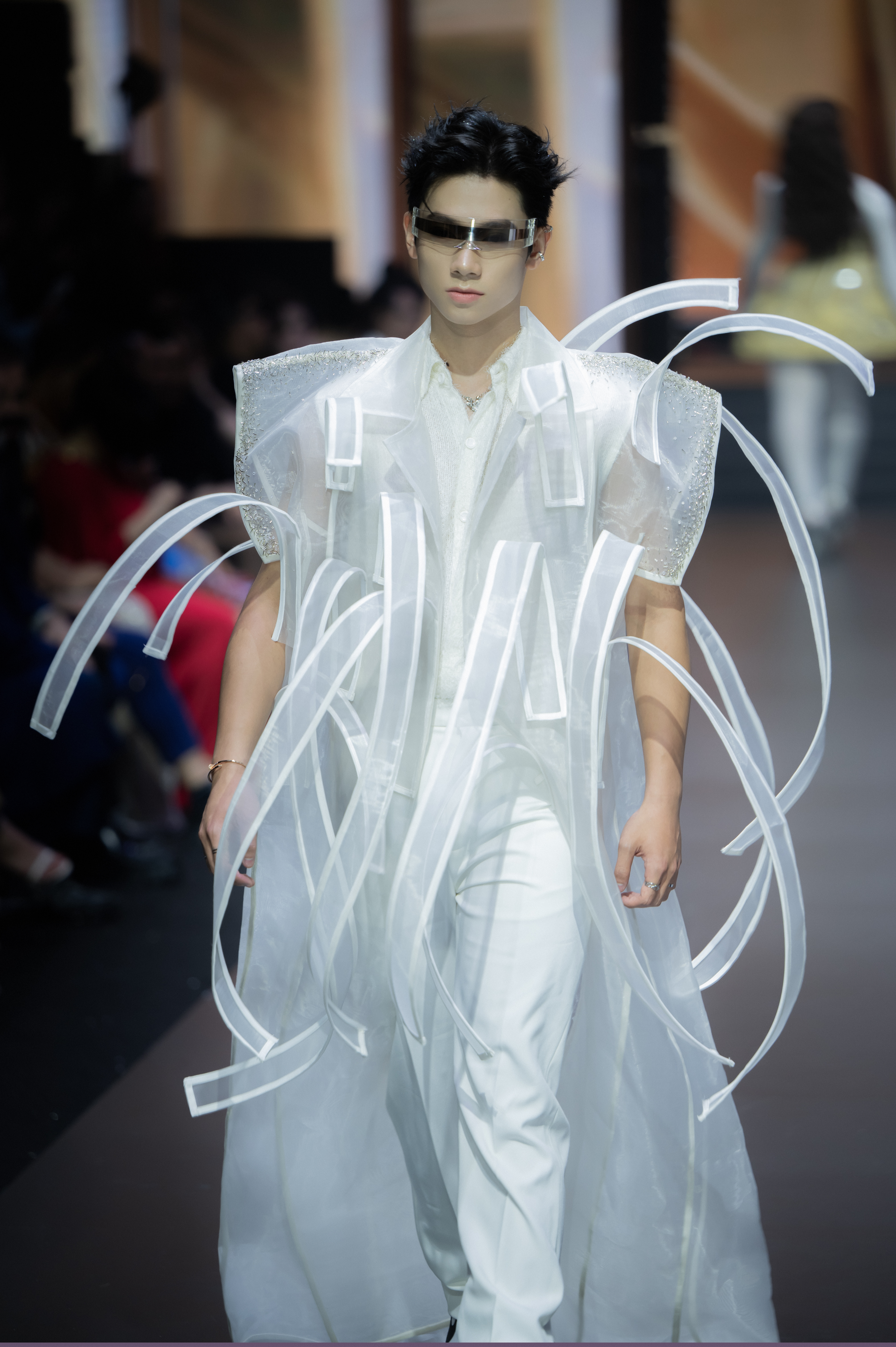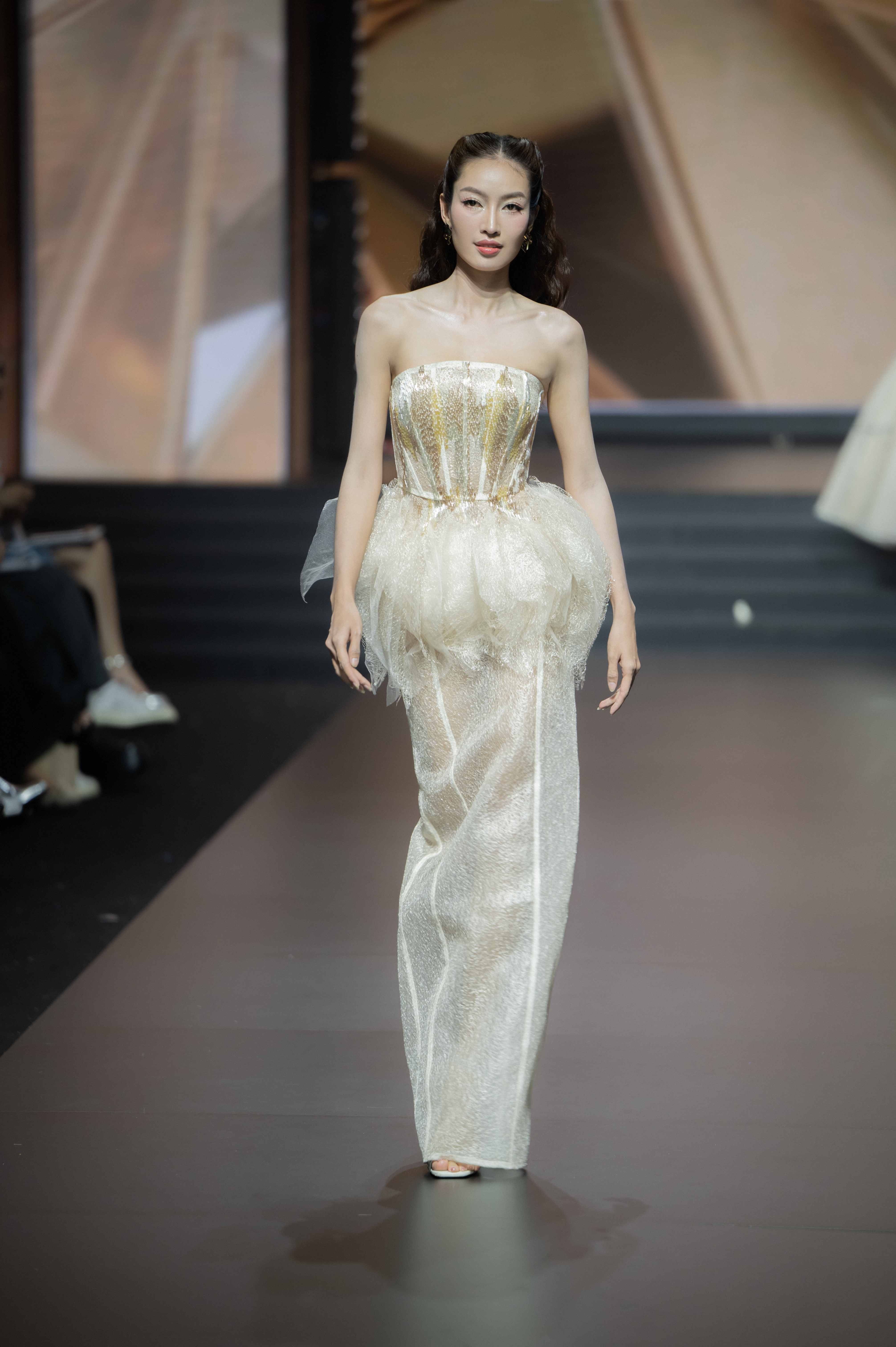 Lấy cảm hứng từ những cánh hoa – mềm mại, nhẹ nhàng nhưng đủ bản lĩnh để bung nở đúng thời điểm – AURA BLOOM không chỉ là bộ sưu tập thời trang, mà còn là lời tri ân đến hành trình trưởng thành đầy nội lực: từ im lặng đến tự tin, từ e ấp đến rực rỡ. Những thiết kế của Ivan Trần khéo léo chuyển sắc từ gam màu dịu nhẹ đến nổi bật như ánh bình minh, kết hợp với các đường cắt dứt khoát, tạo nên nét đẹp vừa nữ tính vừa quyền lực, cuốn hút mọi ánh nhìn.