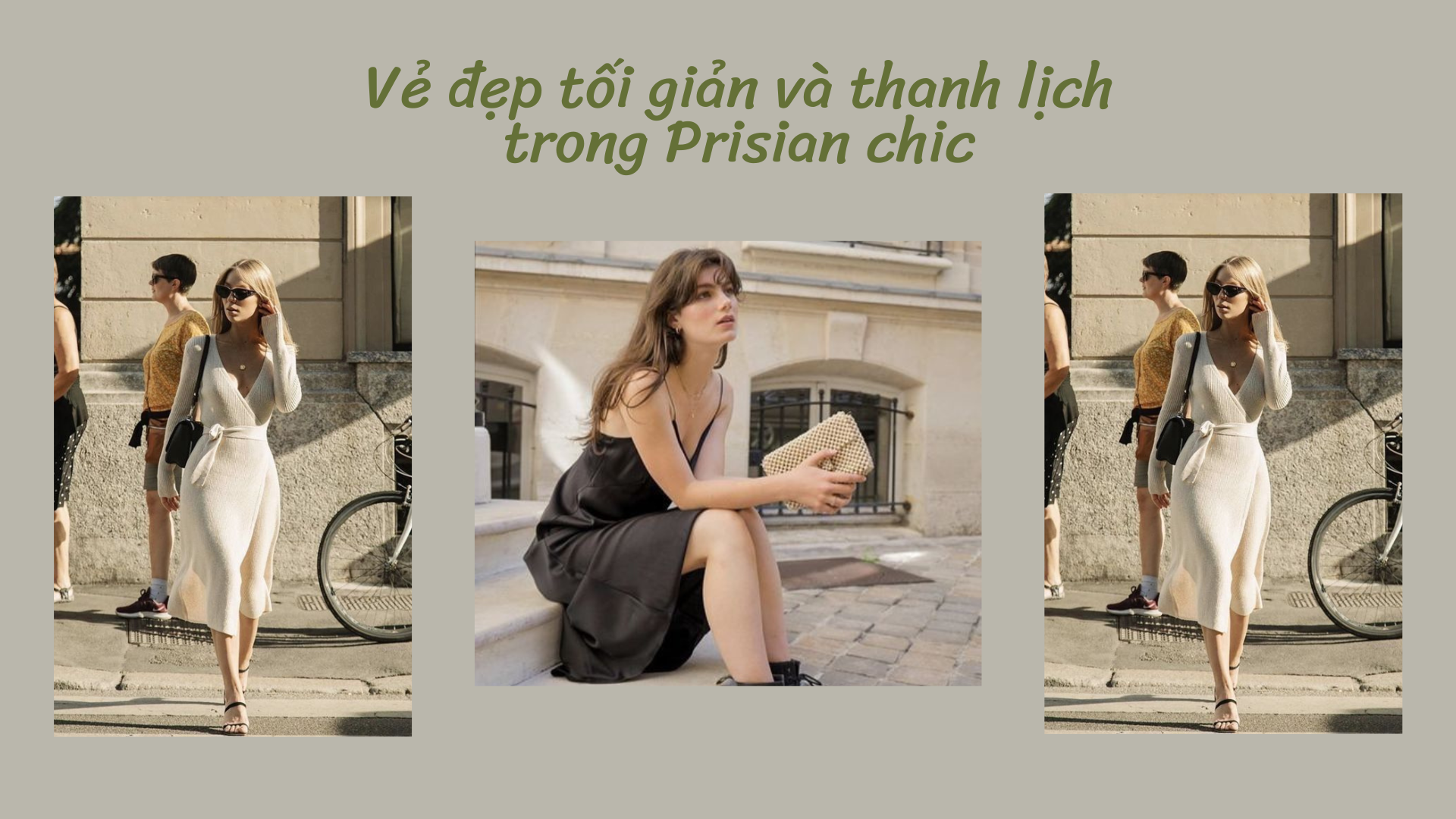 Sành điệu nhưng đơn giản và sang trọng là khái niệm vàng của những quý cô. Những cô nàng theo đuổi phong cách Parisian chic thường lựa chọn trang phục đơn giản, không quá phức tạp và không có màu sắc quá tươi sáng.