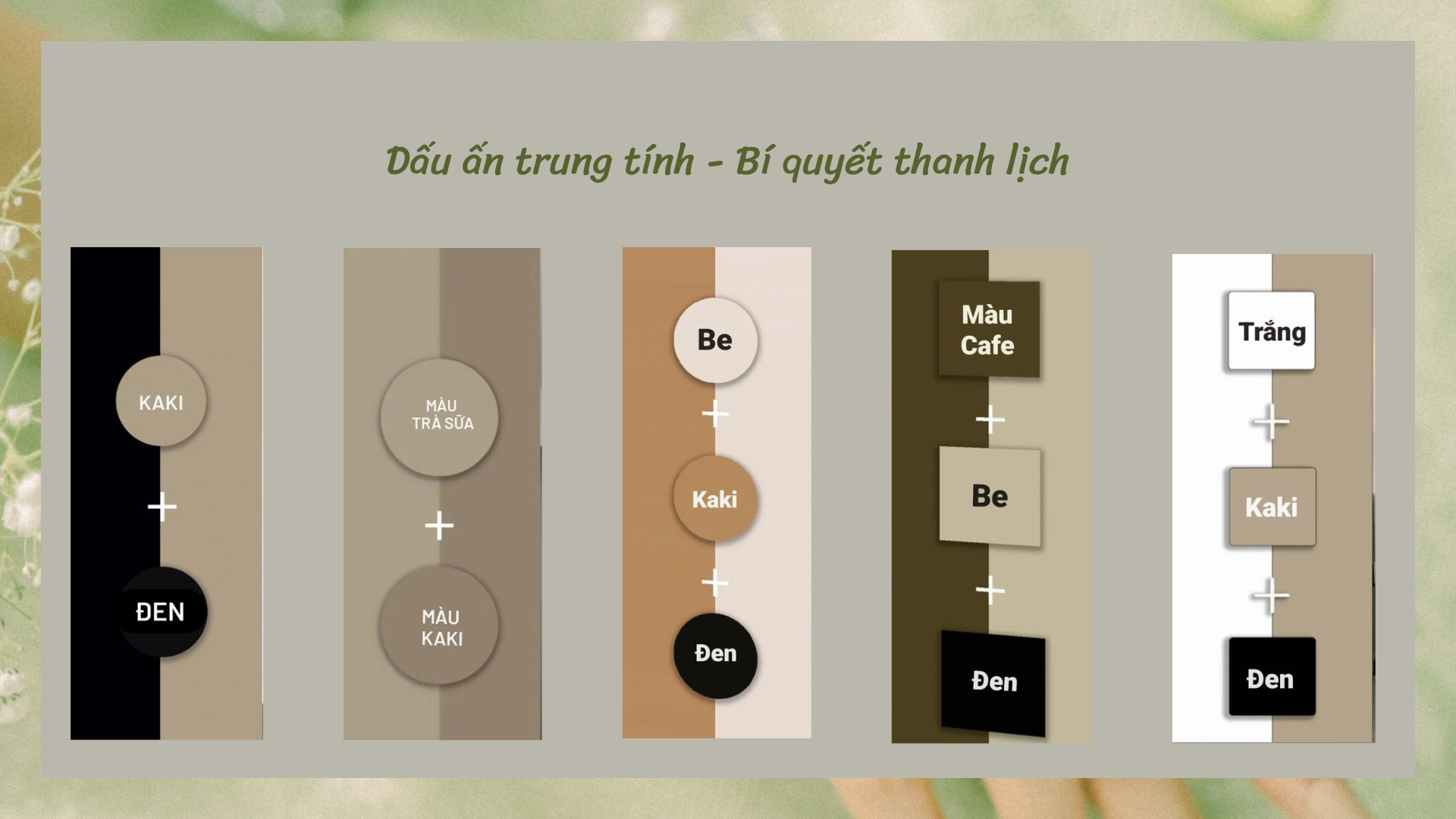 Gam màu trung tính thường được các cô nàng ưa chuộng để tạo ra vẻ đẹp thanh lịch và tinh tế. Sự kết hợp giữa các gam màu trung tính như đen, kaki, be, trắng, xám… được các cô nàng lựa chọn để diện lên set đồ của mình tạo nên vẻ ngoài tối giản vượt thời gian.
