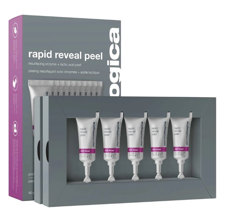 Dermalogica Rapid Reveal Peel giúp hòa tan các mảnh vụn mờ xỉn để trả lại làn da trắng sáng, đều màu, khỏe mạnh. Sản phẩm cũng giúp làm mờ nếp nhăn, vết chân chim hiệu quả. Sản phẩm dành cho những người có làn da nhiều khuyết điểm (da sần sùi, mụn, thâm nám, nếp nhăn) và đã quen với các chất tẩy tế bào chết hóa học ít nhất 2-3 tháng.