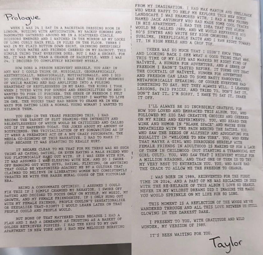 Trích đoạn cuối trong lời mở đầu của Taylor Swift cho album:
