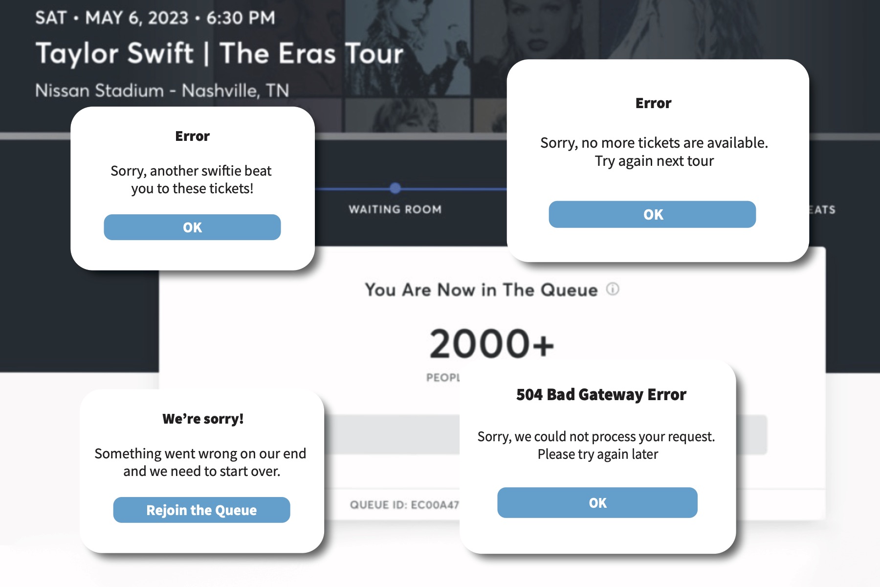 Nếu ai đã từng trải nghiệm đặt vé Eras Tour trên trang web của Ticketmaster, chắc hẳn sẽ hình dung được số lượng về lượt đợi cũng như sức ép của hàng triệu người khác đang xếp hàng chờ mua vé. Taylor Swift đã phá kỷ lục tại Ticketmaster khi có 3,5 triệu người đăng ký mua vé, nhiều hơn bất kỳ nghệ sĩ nào khác trong lịch sử trang web này.