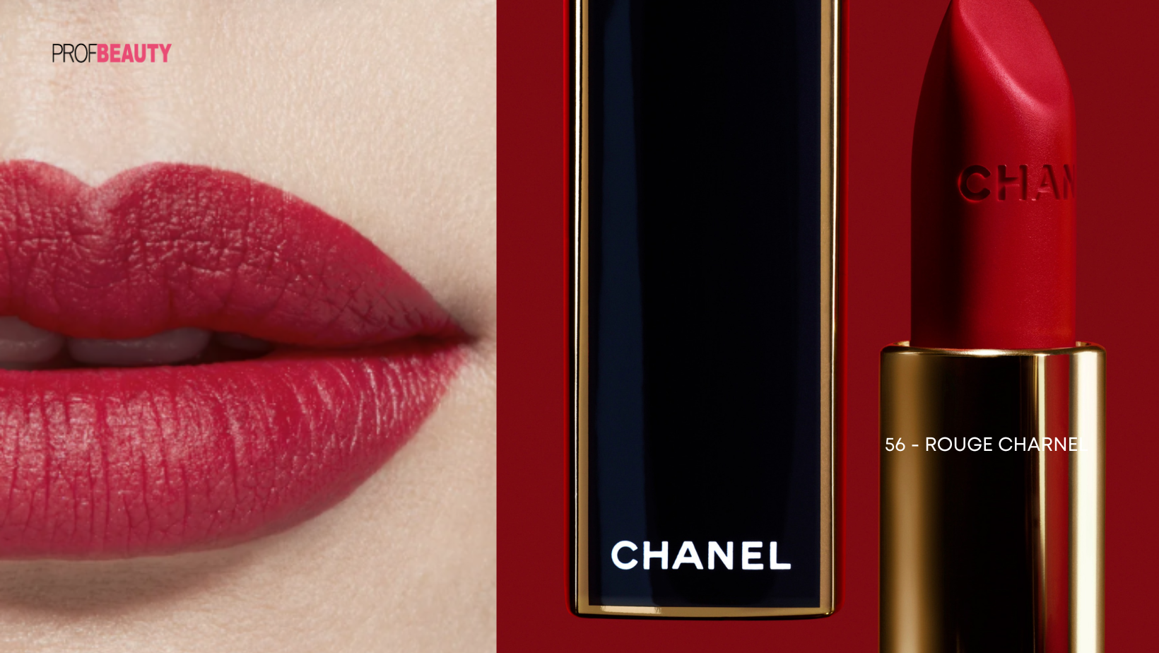 Rouge Charnel là sắc đỏ rực rỡ và mãnh liệt nhưng vẫn giữ được sự tinh tế, không quá chói gợi cảm giác sang trọng và cổ điển. Công thức Velvet của dòng Rouge Allure sử dụng các hạt soft-focus microspheres kết hợp hạt ngọc trai siêu mịn tạo nên hiệu ứng luminous matte với lớp son lì mềm không khô bề mặt và vẫn bóng nhẹ để đôi môi trông đầy đặn và mịn mượt hơn. Thành phần dưỡng gồm bơ hạt mỡ và dẫn xuất dầu jojoba giúp môi được cấp ẩm ngay khi lướt son, mang lại cảm giác dễ chịu như một lớp da thứ hai. Sắc tố trong son đậm đặc, độ bám cao chỉ một lần tô đã lên màu rõ và đều. Thiết kế vỏ son dạng bấm đặc trưng của Chanel với tông đen và vàng kim mang lại vẻ thanh lịch và sang trọng. Dạng thỏi truyền thống cũng giúp việc sử dụng trở nên đơn giản và tiện lợi hơn so với các dòng son lỏng.