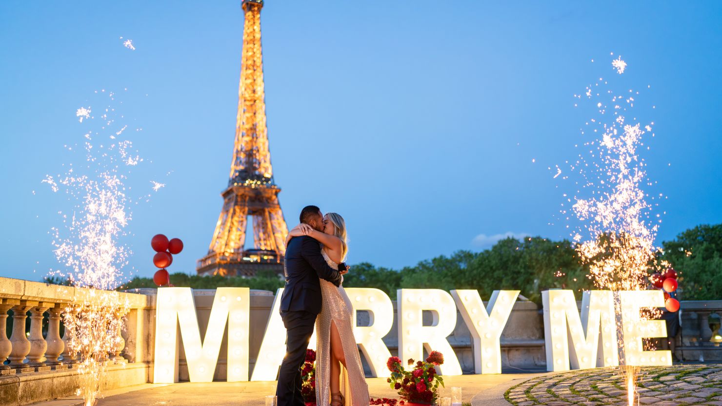 Từ lâu, Paris đã được ca ngợi là hình ảnh thu nhỏ của sự lãng mạn, đứng đầu danh sách những điểm đến cầu hôn trong mơ. Paris có vô số khung cảnh mê hoặc, khiến cho nững trái tim yêu thích cái đẹp thổn thức, từ ánh đèn lấp lánh của tháp Eiffel cho đến buổi tối mù sương bên cạnh Seine thơ mộng. Bạn cũng có thể cân nhắc việc cầu hôn trong một chuyến du ngoạn ngắm cảnh dọc theo sông này, khẳng định tình yêu tại bức tường I Love You huyền thoại hoặc giữa vẻ đẹp thanh bình của Vườn Luxembourg với Đài phun nước Medici được nhiều người yêu thích.