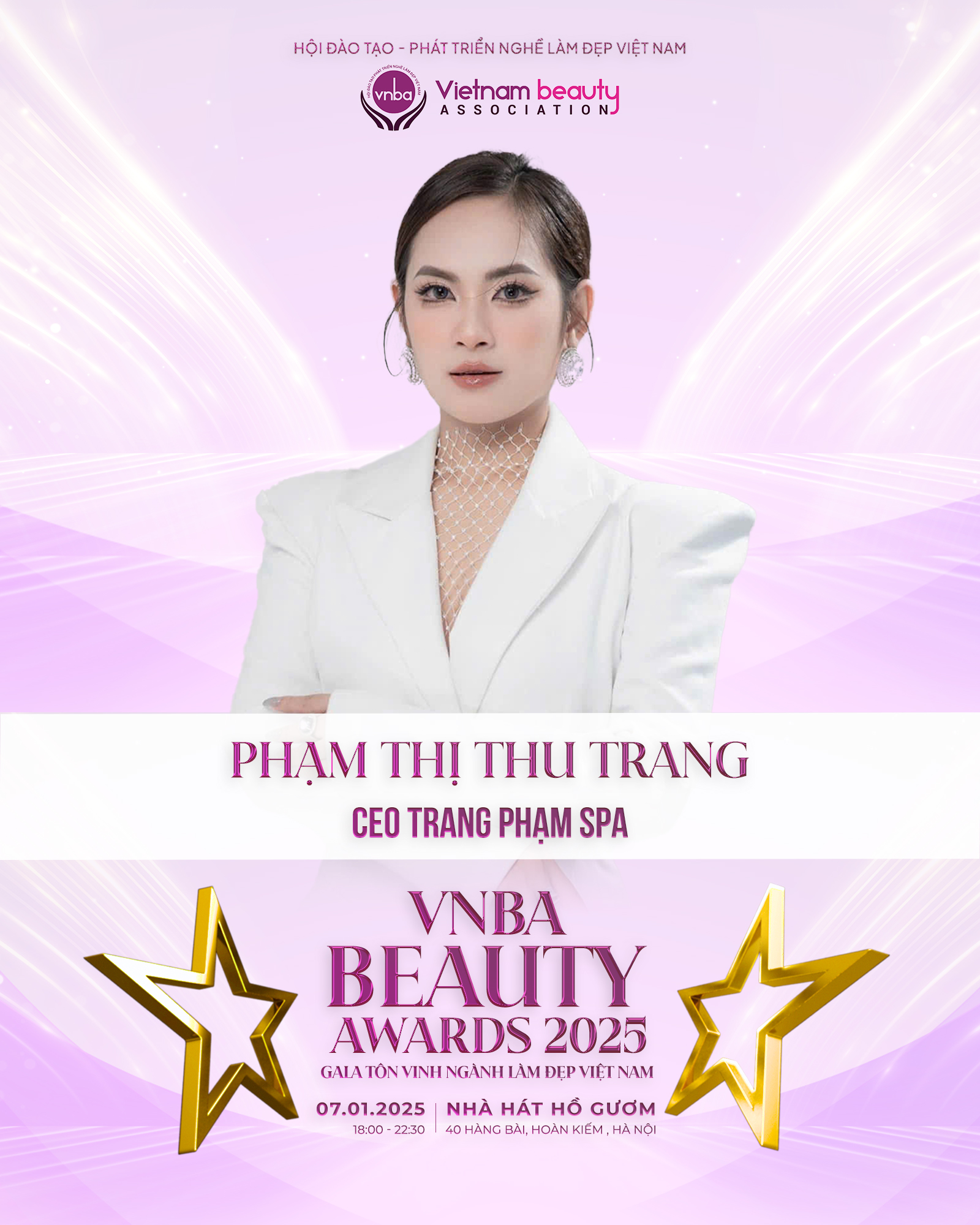 VNBA Beauty Awards 2025 là chương trình vinh danh những cá nhân và tổ chức xuất sắc trong ngành làm đẹp, ghi nhận các thành tựu nổi bật trong năm 2024 và hướng tới sự phát triển bền vững của ngành làm đẹp trong năm 2025. Các hạng mục đề cử trong chương trình VNBA Beauty Awards 2025 gồm có: