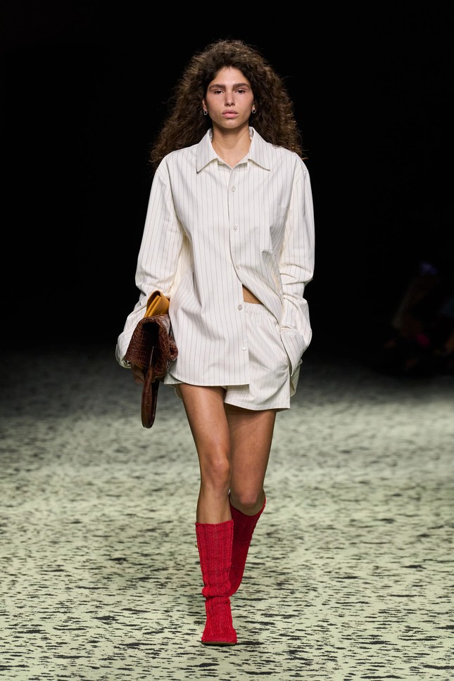 Tuần lễ thời trang Xuân Thu 2023 chính là một “bằng chứng sống” hợp lý nhất cho xu hướng boxer short đang lên. Nhà thiết kế Matthieu Blazy đã gây thích thú khi trình làng trang phục quần boxer cotton trắng với đường sọc màu đỏ nhạt tinh tế mặc cùng áo sơ mi kẻ sọc nhưng khoảng cách giữa các sọc to hơn và dưới chân là đôi vớ đan với đế lót như giày đơn giản nhưng tinh tế và tỉ mỉ.