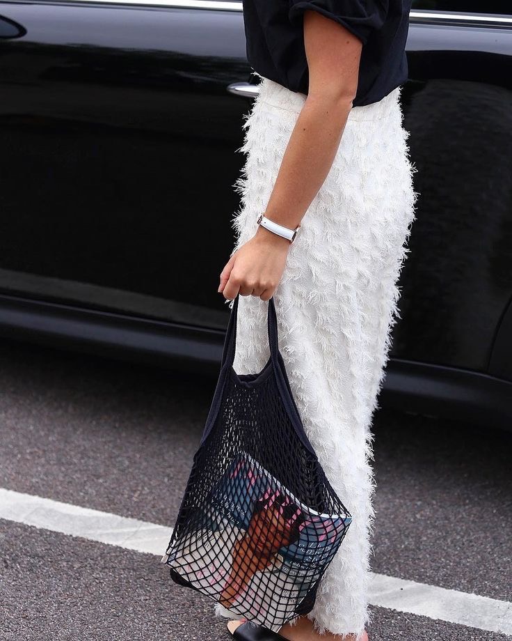 Truyền tải vẻ ngoài phóng khoáng được giới mộ điệu đặc biệt ưa chuộng, dáng túi được lấy cảm hứng từ những chiếc bọc lưới tự đan của những người nhập cư và nhanh chóng “lọt vào mắt xanh” của các nhà thiết kế đình đám.